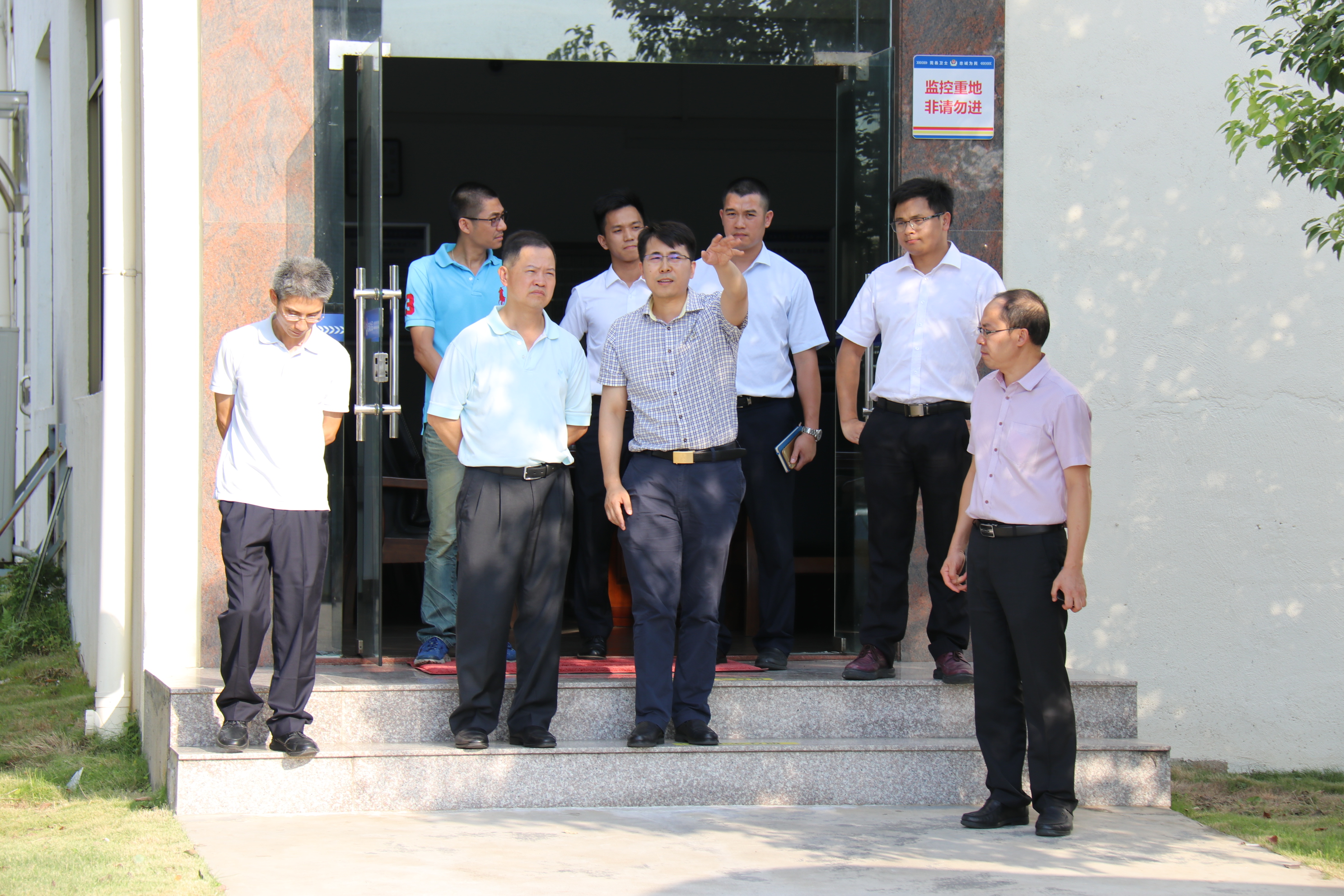 2018年7月20日,市国资委副主任游锦辉(左二)一行到水濂考场视察指导工作