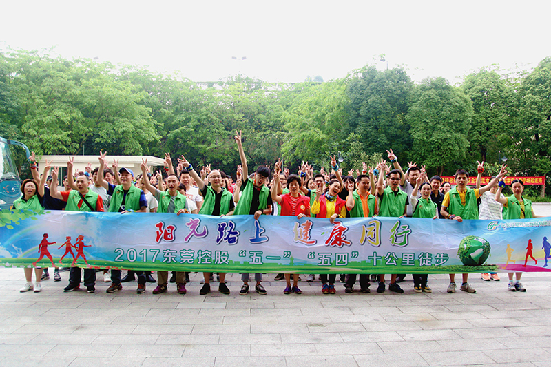 2017年5月3日,东莞控股公司举行迎“五一”-“阳光路上,健康同行”十公里徒步活动,员工们浩浩荡荡出发。
